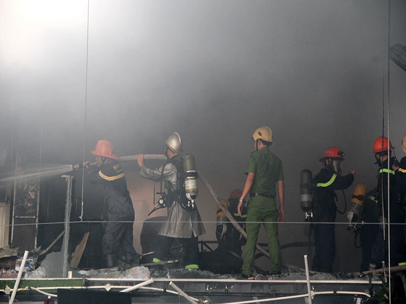 Nhận được tin báo, lực lượng Cảnh sát PCCC TP Đà Nẵng đã nhanh chóng điều 7 xe cùng hàng chục cán bộ chiến sĩ đến hiện trường. Theo Thượng tá Lê Phước Cam, Trưởng phòng Cảnh sát PCCC số 1, do đây là gara ô tô nên số chất cháy rất là đa dạng, đặc biệt là sơn và các thùng sốp nên lửa cháy lan rất nhanh, lượng khí độc tỏa ra lớn.