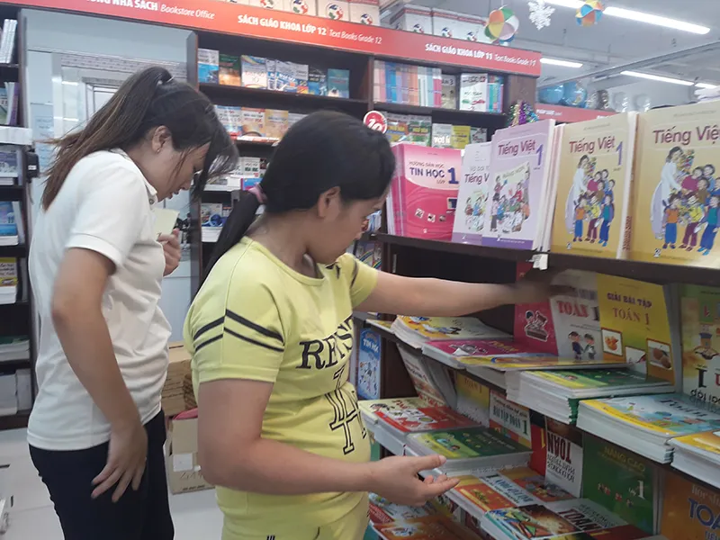 Tại nhà sách Nguyễn Văn Cừ, quận Thủ Đức, TP.HCM, kệ trưng bày SGK lớp 1 đã gần như hết sạch, chỉ còn sót lại một số vở bài tập. Chị Hoa (36 tuổi, quận Thủ Đức) cho biết sáng nay chị mới nhận được danh sách sách vở cần thiết từ giáo viên chủ nhiệm nên mới đi mua. Đến thời điểm hiện tại, chị vẫn chưa có đủ bộ SGK cho con mình. Nhân viên bán hàng tại nhà sách này xác nhận SGK lớp 1 đã hết và chưa biết bao giờ mới có hàng.