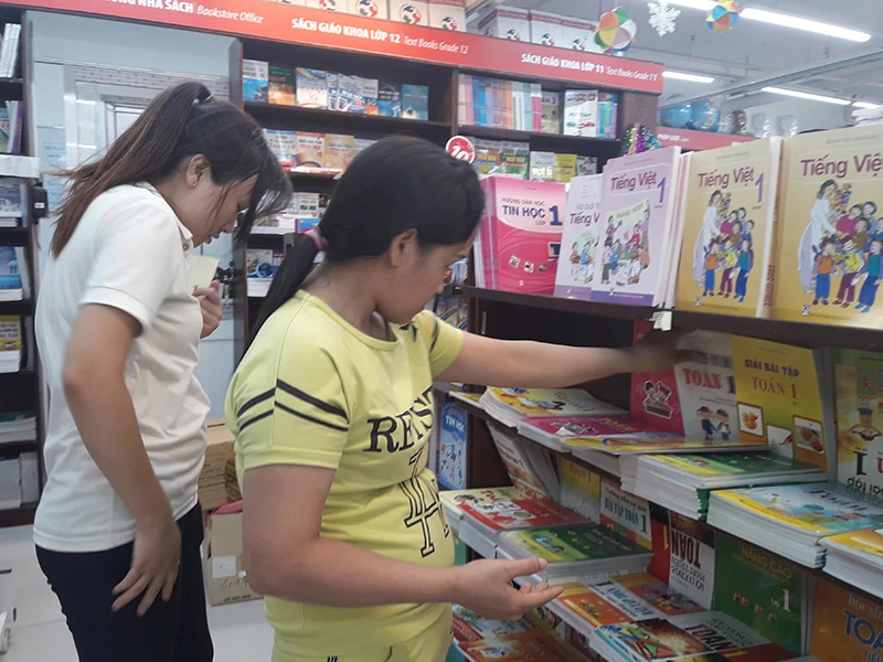 Khách hàng mua sách giáo khoa lớp 1 tại nhà sách Fahasa Linh Trung, quận Thủ Đức, TP.HCM. Ảnh: THỦY TRÚC