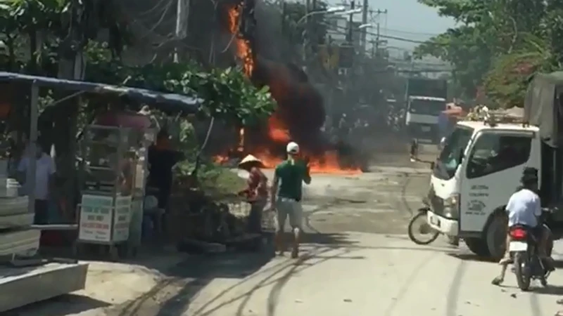Lửa bén vào bó cáp viễn thông bùng lên dữ dội và phát nổ khiến các phương tiện lưu thông trên đường phải dừng lại, đổi lộ trình. Thông tin được báo với lực lượng chức năng.