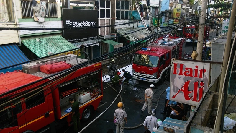 Sau khi nhận được thông tin, lực lượng cảnh sát PCCC quận 3 đã nhanh chóng điều động ba xe cứu hỏa đến hiện trường phối hợp với lực lượng tại chỗ khống chế lửa. Toàn bộ tuyến đường được phong tỏa để phục vụ cứu hỏa.