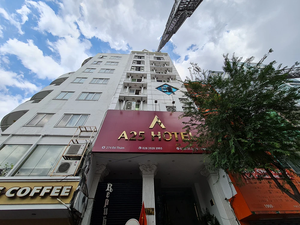 Khoảng 13 giờ 45 phút ngày 28-2, khói lửa bất ngờ bùng lên từ tầng tám khách sạn trên đường Đề Thám (phường Phạm Ngũ Lão, quận 1, TP.HCM).