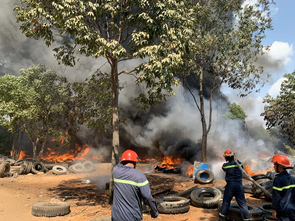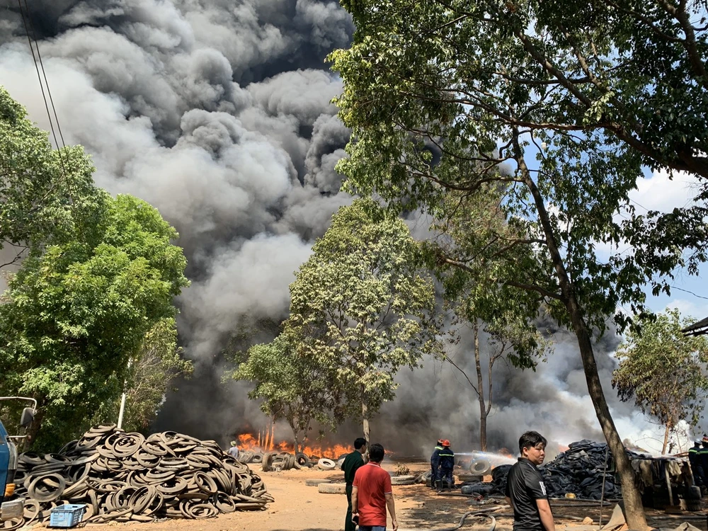 Theo thông tin ban đầu, khoảng 14 giờ 30 cùng ngày, lửa bắt đầu bốc lên tại một bãi đất trống là kho chứa lốp ô tô cũ tại phường Phú Lợi (TP Thủ Dầu Một, tỉnh Bình Dương).