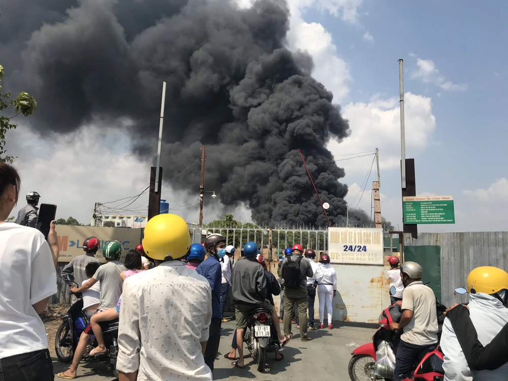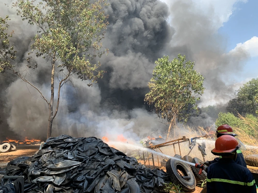 Do tại đây chứa toàn lốp ô tô nên lửa lan nhanh, bốc cao dữ dội, cột khói đen bốc cao hàng chục mét khiến nhiều người dân quanh khu vực đó hoảng sợ.