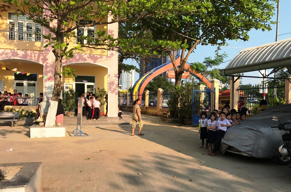 Hàng trăm học sinh được các giáo viên, bảo vệ hướng dẫn chạy về khu vực an toàn. Nhiều trẻ lo sợ, khóc thét.