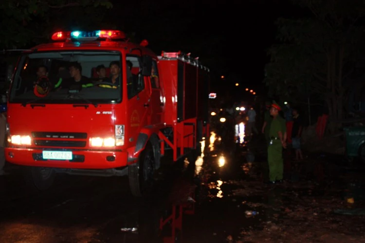 Xe cứu hỏa di chuyển khỏi hiện trường