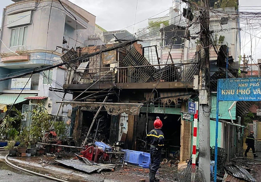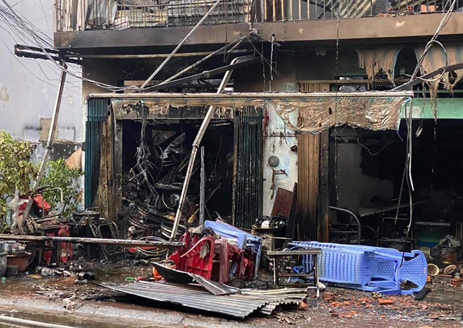 Vụ cháy khiến bốn căn nhà bị thiêu rụi, hai căn nhà khác nằm phía sau cũng bị cháy sém.