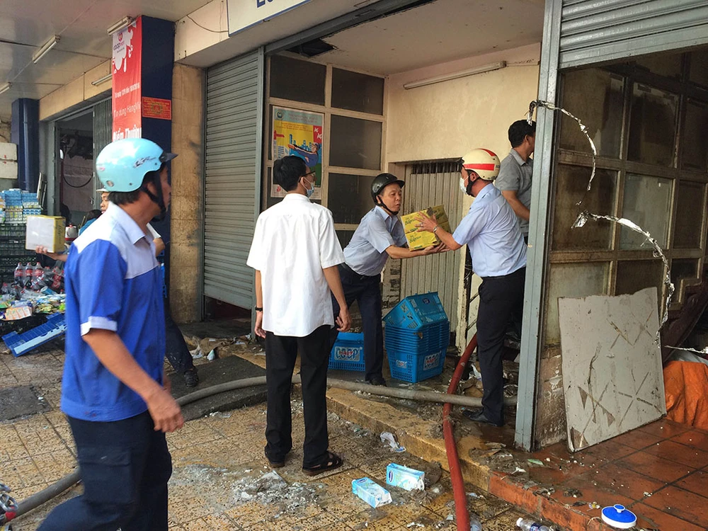 Sáng 31-8, khi các tiểu thương đang dọn hàng bán buổi sáng thì phát hiện có mùi khét, tiếp đó điện bị cúp đột ngột nên tri hô rồi khiêng đồ đạc chạy ra ngoài.