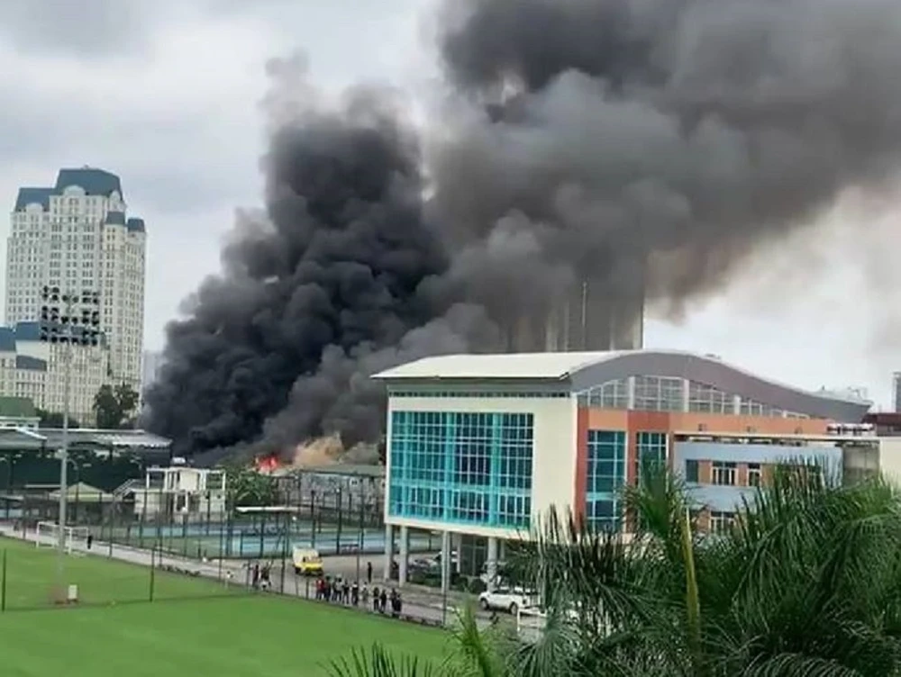 Hiện trường vụ cháy gần trụ sở Liên đoàn Bóng đá Việt Nam. Ảnh: Facebook