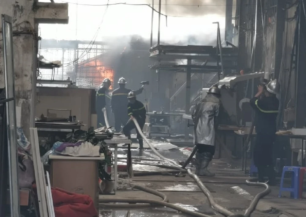 Ghi nhận tại hiện trường, lực lượng cảnh sát PCCC điều động xe cứu hỏa cùng rất nhiều chiến sỹ tới dập lửa. Do vị trí cháy nằm sâu trong xưởng, cảnh sát phải mất nhiều công sức tiếp cận và khống chế ngọn lửa.