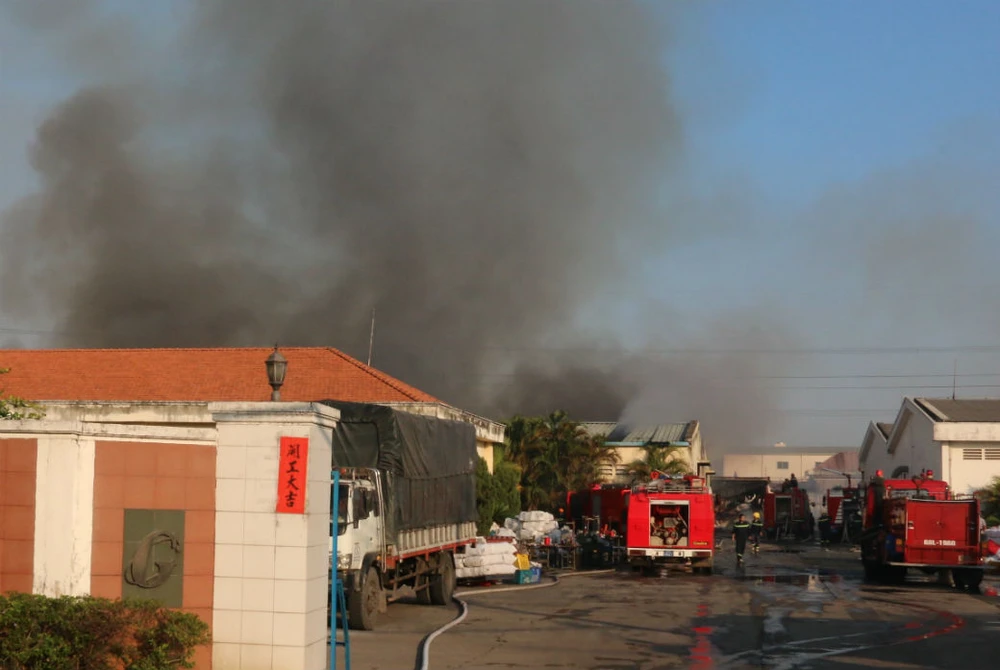 Rạng sáng 17-3, hàng chục xe chữa cháy chuyên dụng của PCCC Đồng Nai khống chế vụ hỏa hoạn tại Công ty TNHH dệt Hoành Thân Việt Nam (vốn đầu tư nước ngoài, đóng tại Khu công nghiệp Biên Hòa 2).