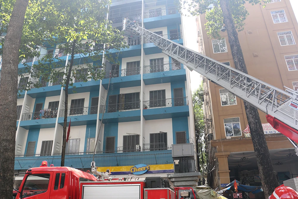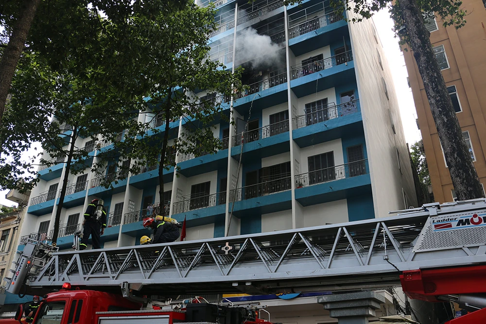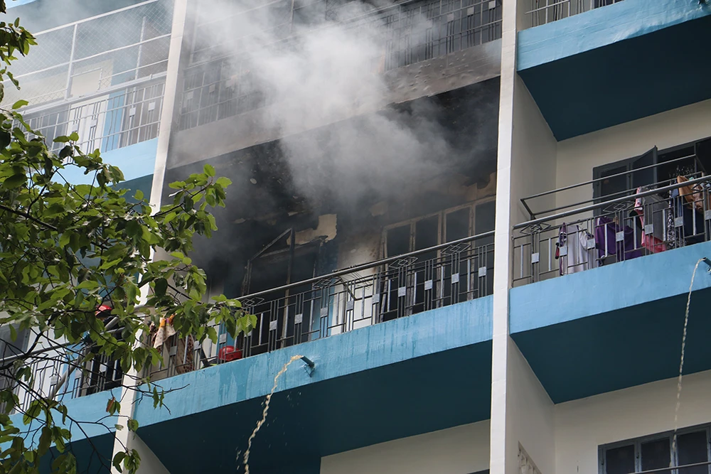 Thông tin ban đầu, khoảng 11 giờ, lửa bùng lên từ căn phòng rộng khoảng 20 mét vuông ở ký túc xá tám tầng của sinh viên Đại học Kinh tế TP.HCM.