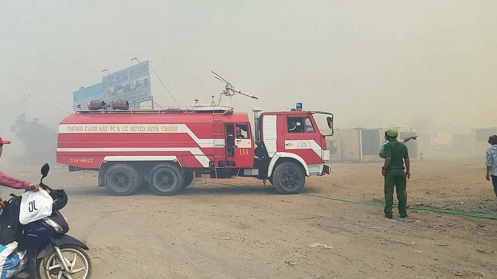 Cảnh sát PCCC huyện Bình Chánh sau đó có mặt, triển khai các hướng dập tắt đám cháy trong ít phút.