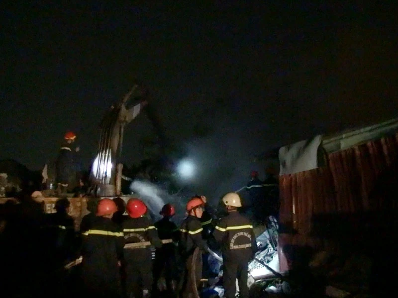Nhiều người huy động các phương tiện cứu hỏa tại chỗ nhưng bất thành. Lửa lớn gặp các vật liệu dễ cháy như nhựa, cao su nên bùng lên dữ dội và lan rộng.