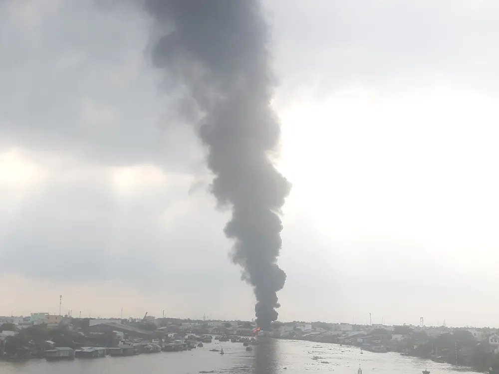 Chiều 23-12, ngay cạnh chợ nổi Cái Răng, hỏa hoạn lớn đã xảy ra ở cơ sở sản xuất dầu chai ở Lộ Vòng Cung (phường An Bình, quận Ninh Kiều, TP Cần Thơ).