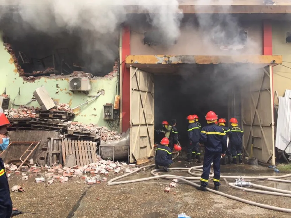 Hiện trường vụ cháy khủng khiếp tại nhà xưởng.