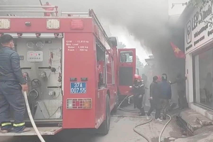 Khi lực lượng chữa cháy tiếp cận hiện trường, lửa đã cháy lớn, cửa cuốn đang đóng chặt, khói, khí độc nghi ngút bao trùm cả căn nhà. Lực lượng chữa cháy đã nhanh chóng triển khai nhiều hướng, dùng các phương tiện chuyên dụng tháo dỡ mái tôn, phá cửa cuốn, nhanh chóng dập tắt đám cháy.