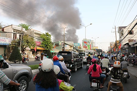 Khu vực cháy là bãi vỏ xe ô tô cũ các loại rất dễ bắt lửa. Vì thế, lửa nhanh chóng lan rộng và tạo thành cột khói đen rất lớn, bốc cao, ở xa trong phạm vi hơn 5 km vẫn nhìn thấy.