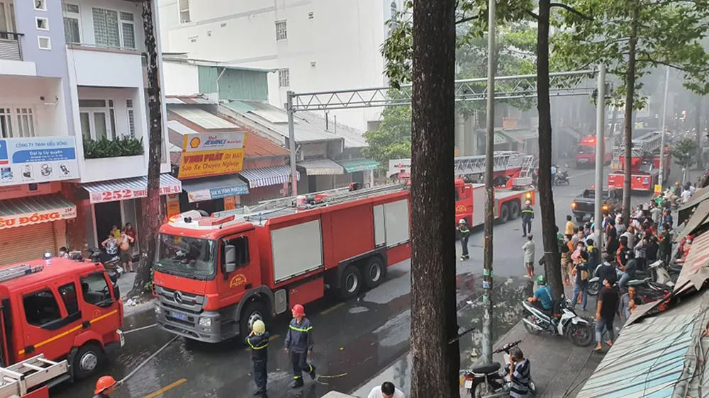 Ngay sau đó, Đội Cảnh sát PCCC quận 1 đã ngay lập túc điều động 7 phương tiện chữa cháy, trong đó có xe thang cùng hàng chục cán bộ chiến sĩ tới hiện trường triển khai công tác dập lửa.