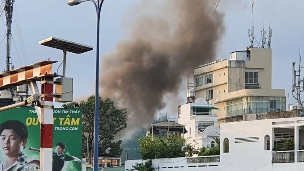 Ngọn khói bốc cao hàng chục mét từ vụ hoả hoạn. Ảnh: HT