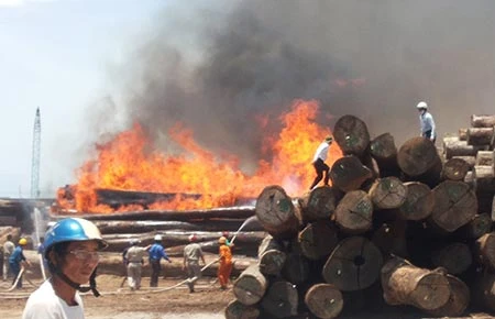 Được biết khu vực xảy ra cháy rộng hơn1 ha, chứa hàng ngàn mét khối gỗ và dăm gỗ chờ xuống tàu xuất khẩu.