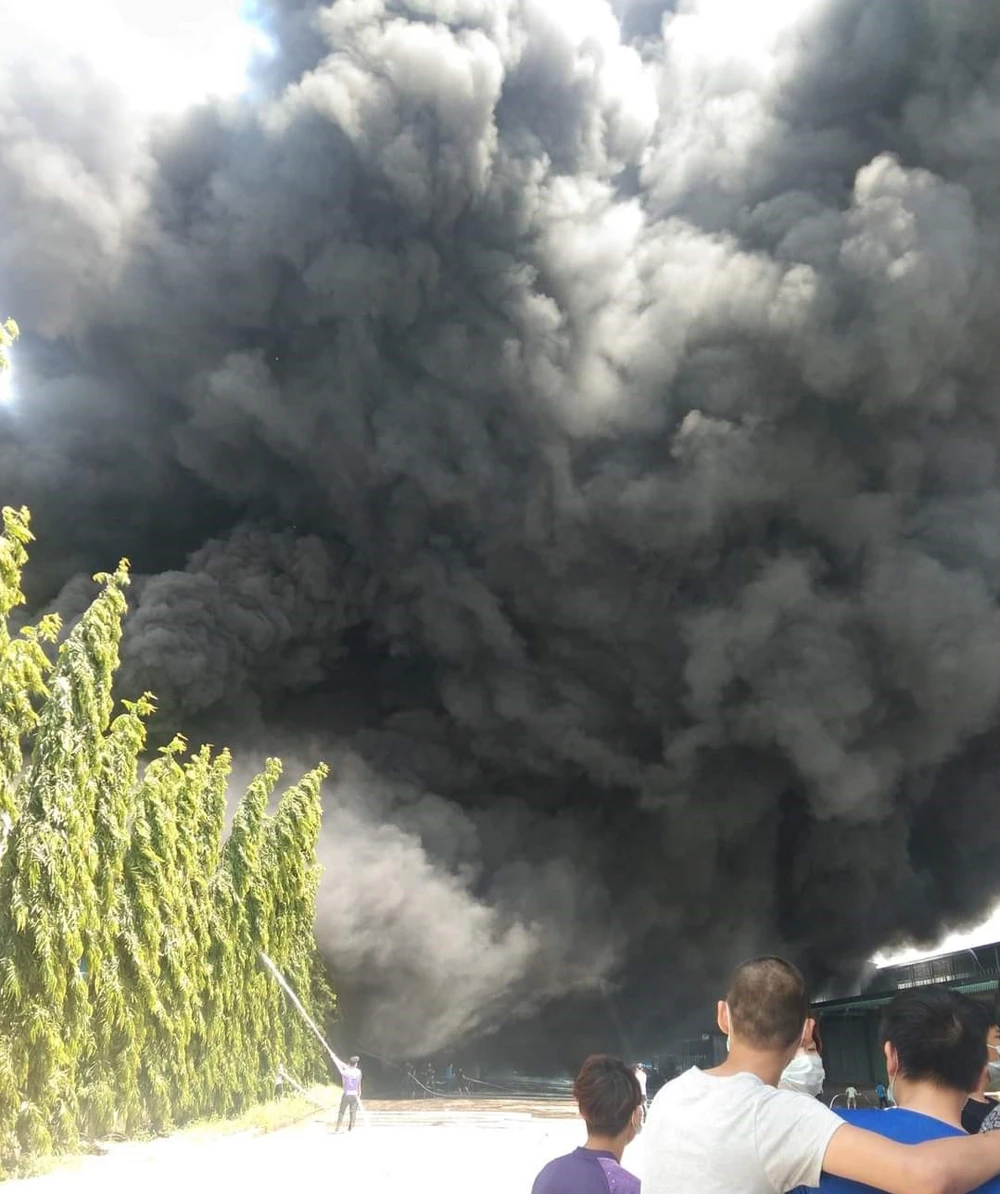 Ngọn lửa đang bao trùm nhiều khu nhà xưởng của công ty, diện tích cháy ước tính ban đầu lên tới khoảng hàng ngàn mét vuông.