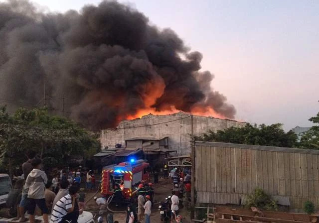 Chiều 17-3, lửa lớn đã bùng phát dữ dội tại khu vực nhà kho của hai công ty Hoa Bửu và Hoa Dương có địa chỉ tại 902 quốc lộ 1A, phường Bình Trị Đông A, quận Bình Tân, TP.HCM.