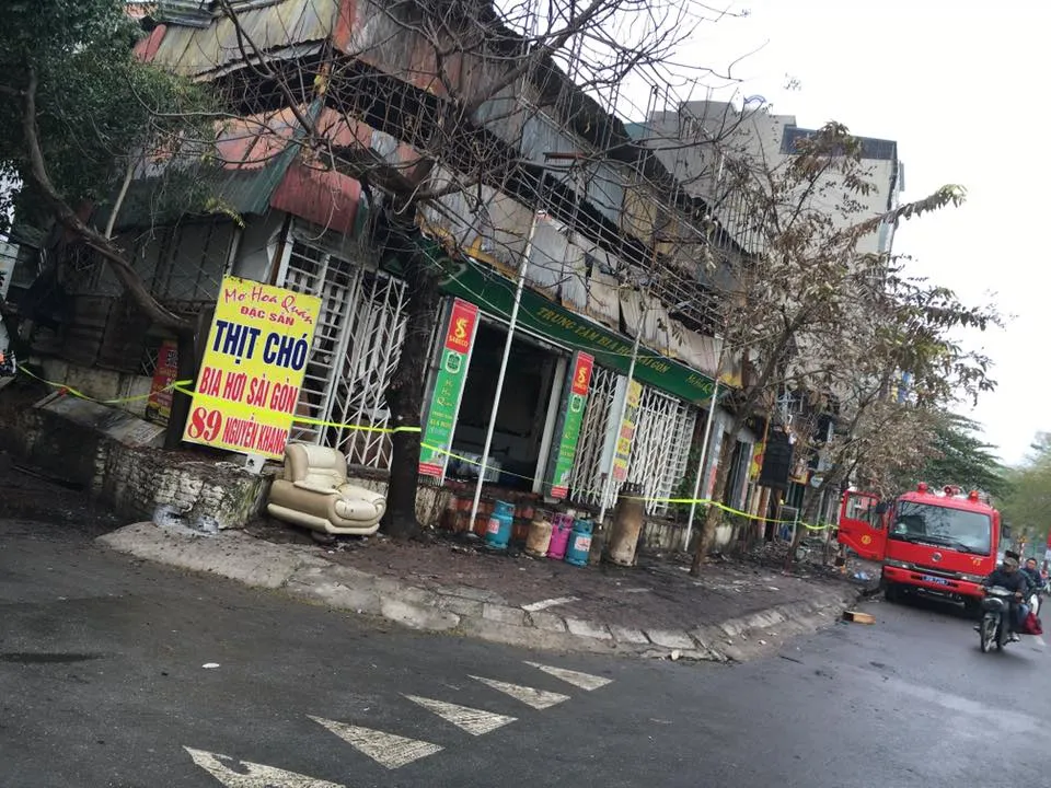 Theo một số nhân chứng cho hay, vào khoảng gần 6 giờ sáng nay, một ngọn lửa kèm theo cột khói lớn đã bốc lên từ số 89 phố Nguyễn Khang. Chỉ khoảng 10 phút đồng hồ sau, ngọn lửa bùng phát lớn cháy dữ dội, lan sang bốn ki-ốt gần kề. Ngay sau khi phát hiện đám cháy, người dân đã báo với cơ quan chức năng, đồng thời đập cửa báo cho các chủ cửa hàng biết nhưng cả năm gian hàng này điều không có người bên trong.