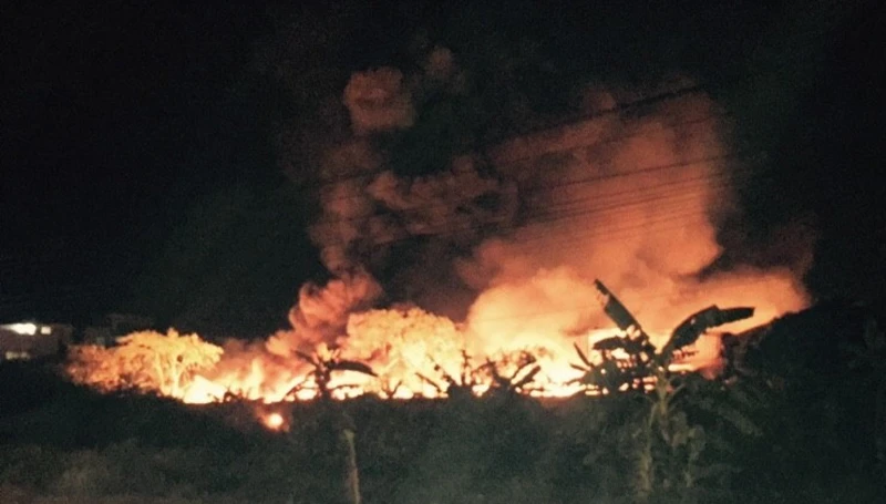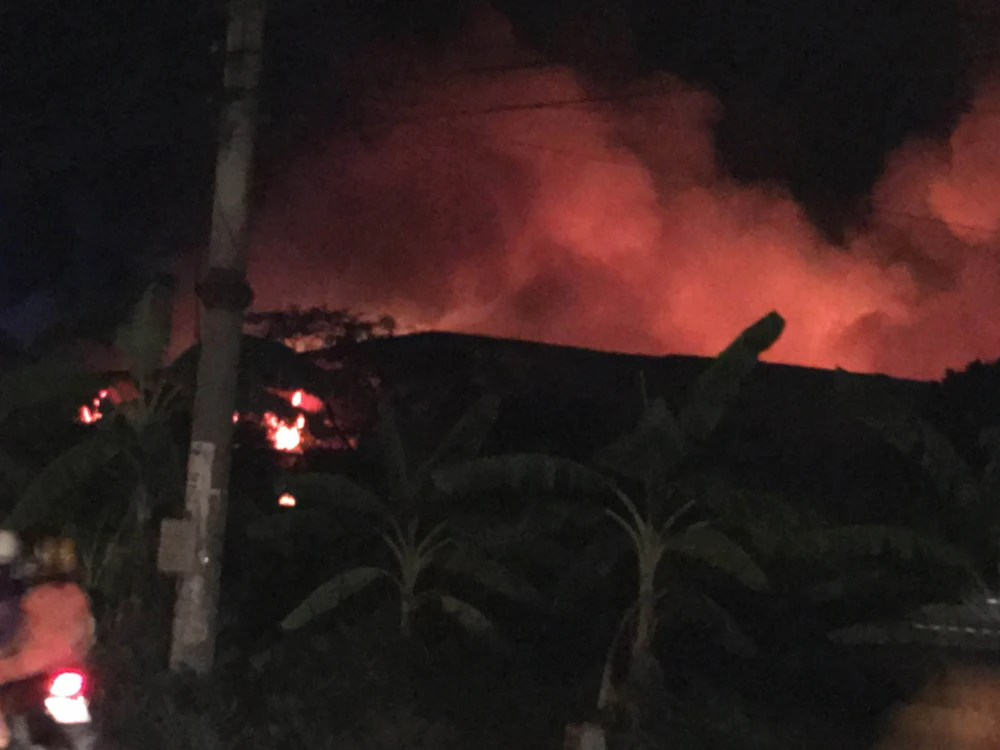 Đến 22 giờ, lửa còn đỏ rực một góc trời.