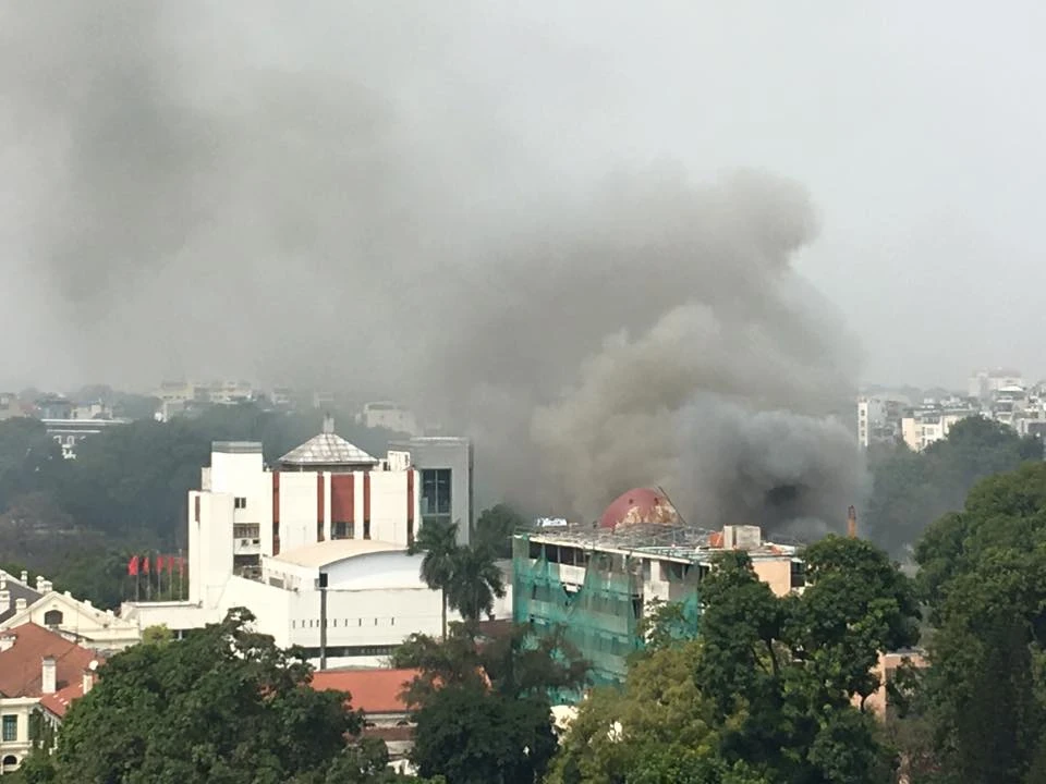Đám cháy xuất hiện tại Cung Thiếu nhi Hà Nội. Ảnh: Otofun