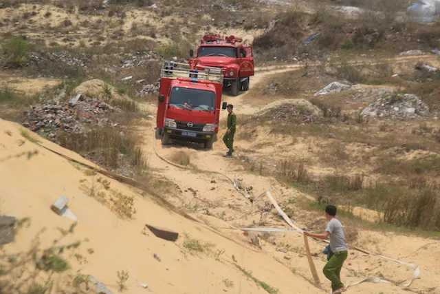 Lực lượng quân đội, công an, ban quản lý danh thắng, cán bộ quận Ngũ Hành Sơn, phường Hòa Hải được huy động đến hiện trường để dập lửa. LÊ PHI