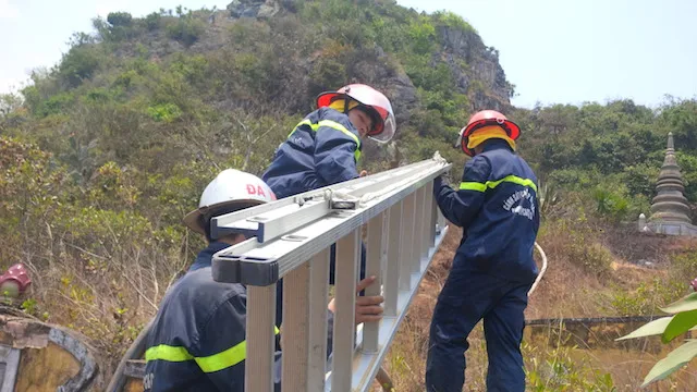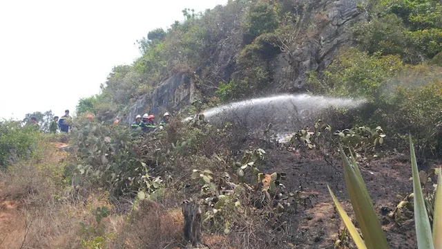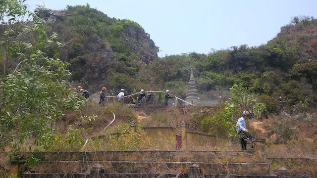 Lực lượng chức năng dập cháy tại ngọn Thổ Sơn-một trong năm ngọn của danh thắng Ngũ Hành Sơn, TP Đà Nẵng. LÊ PHI