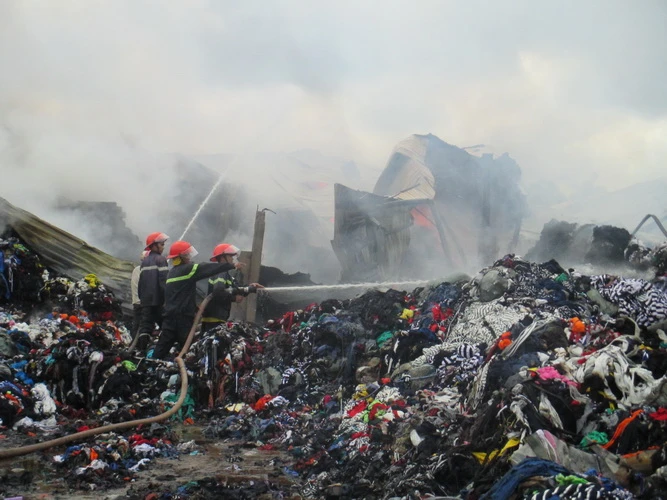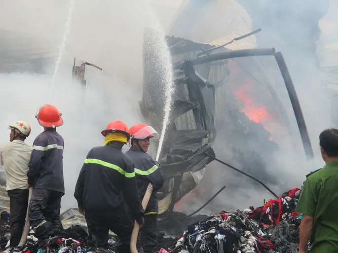 Các kiện vải vẫn cháy ngùn ngụt