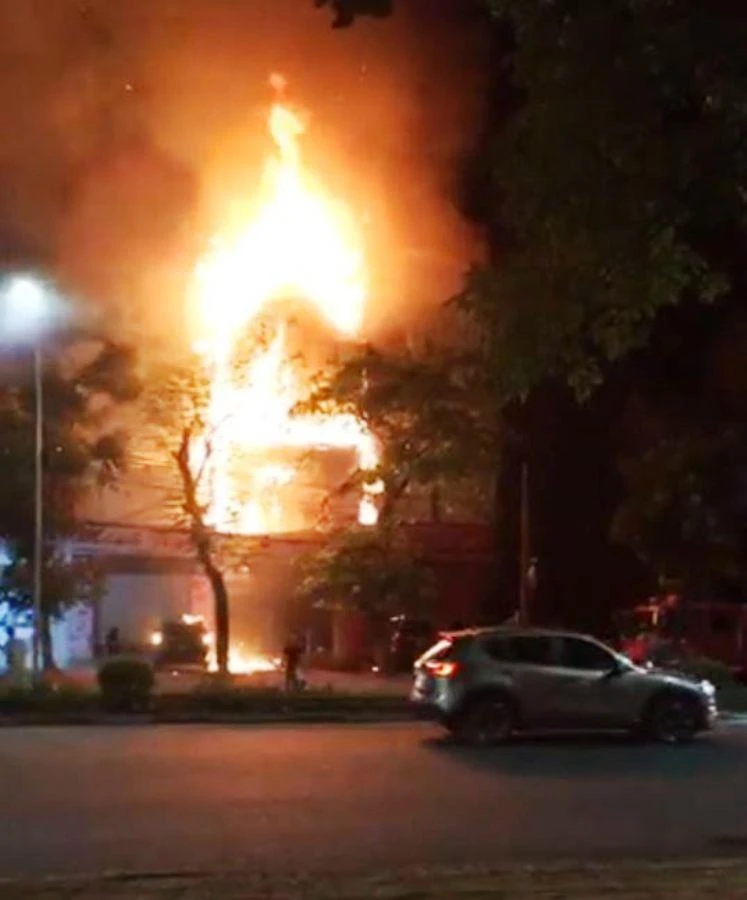 Vụ hỏa hoạn xảy ra gần 20 giờ đêm 8-7, tại ngôi nhà hiệu Ảnh kỹ thuật số - áo cưới- quay camera- dựng phim T.H bên đường Trần Phú, TP Vinh (Nghệ An), người trong nhà kịp chạy thoát ra ngoài.