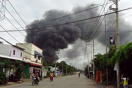 Khói đen bao phủ cả khu phố.