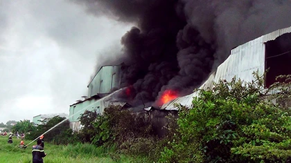 Tại hiện trường, vụ hỏa hoạn đã thiêu rụi hàng trăm mét vuông nhà xưởng. Nhiều tài sản bị cháy đen, hư hại nặng. Rất may, không có thương vong về người.