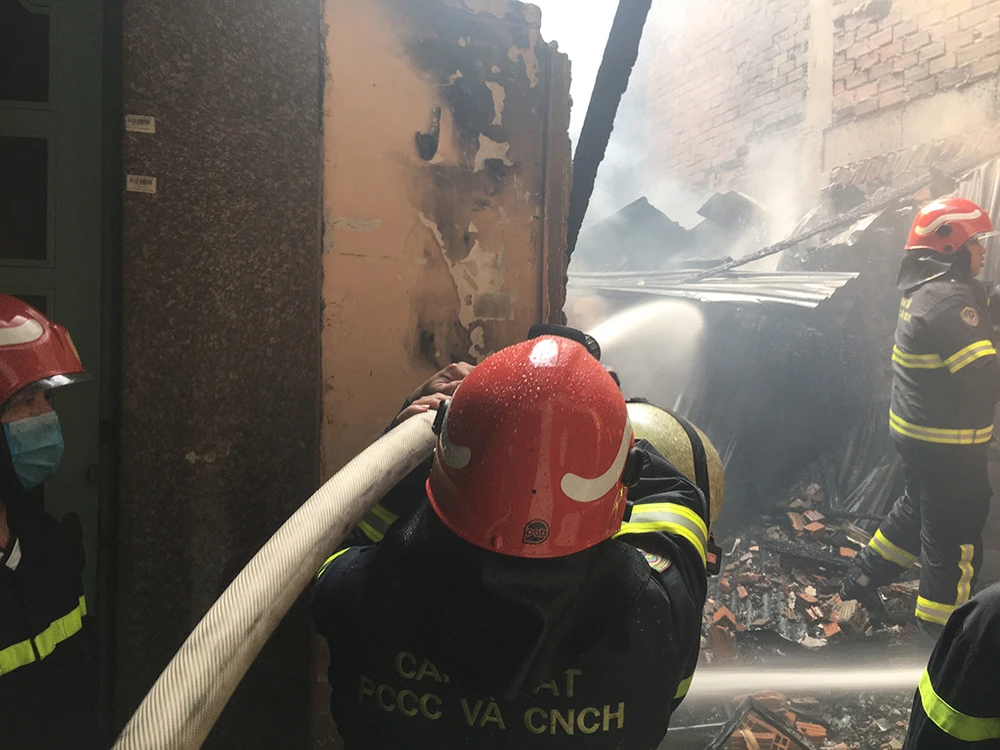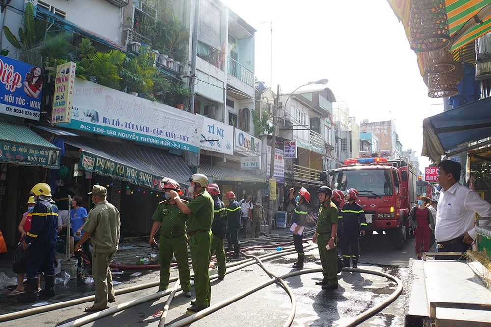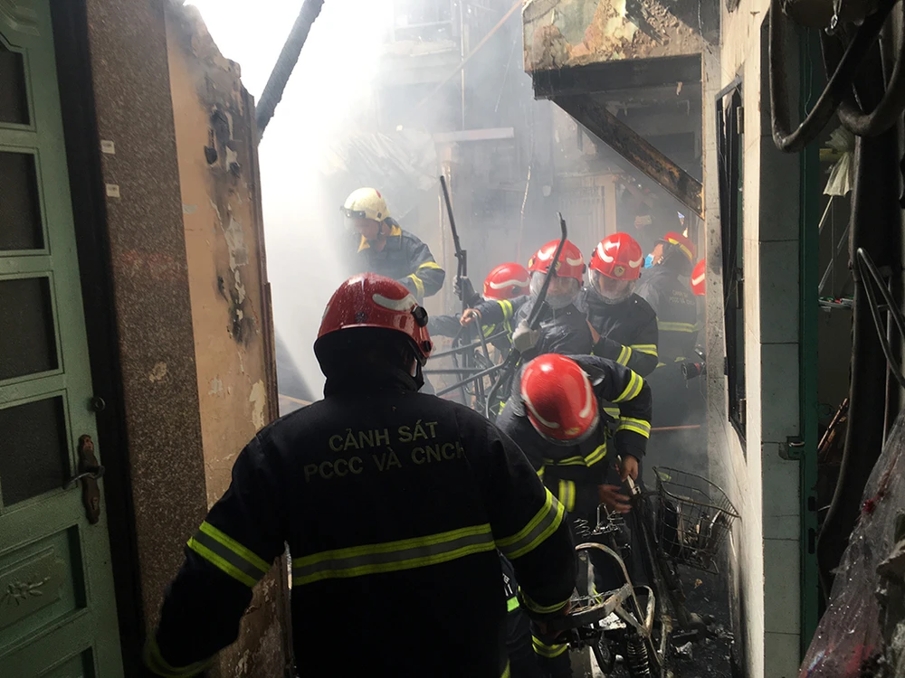 Cảnh sát PCCC TP.HCM điều động cảnh sát PCCC quận 3, KV1 gồm gần 10 xe và hơn 60 cán bộ chiến sĩ nhanh chóng triển khai ba mũi tiếp cận khống chế đám cháy trong ít phút.