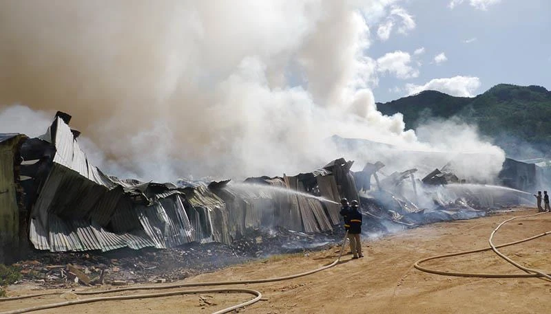 "Cơ quan chức năng đã huy động gần hết lực lượng chữa cháy tỉnh Bình Định để dập lửa" - phòng này thông tin.