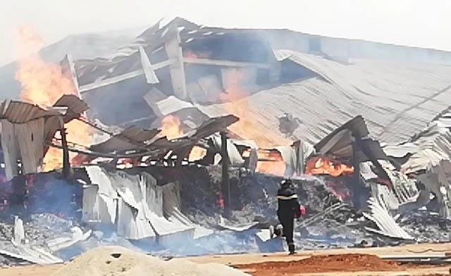 Đám cháy thiêu rụi cả khu vực nhà kho chứa dăm gỗ, viên nén.