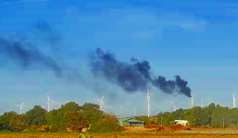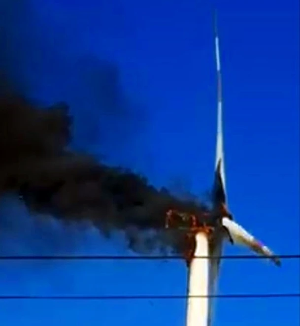 Theo những nhân chứng tại hiện trường, gần 7 giờ sáng, tuabin của một trụ điện gió bất ngờ bốc cháy dữ dội nghi do gặp sự cố kỹ thuật.