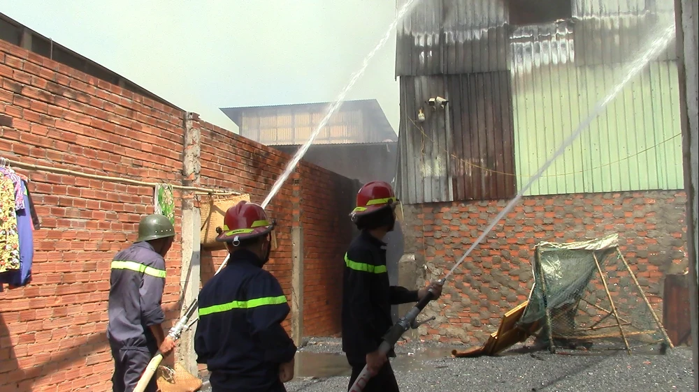 Ghi nhận tại hiện trường, do công ty nằm sâu trong khu dân cư nên công tác chữa cháy gặp nhiều khó khăn. Lực lượng PCCC đã phải tiếp cận từ nhiều phía, phá tường để khống chế ngọn lửa.