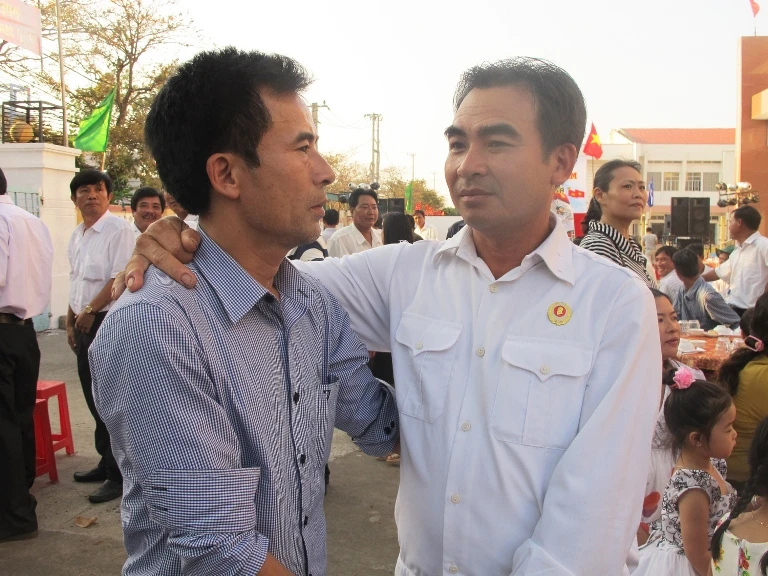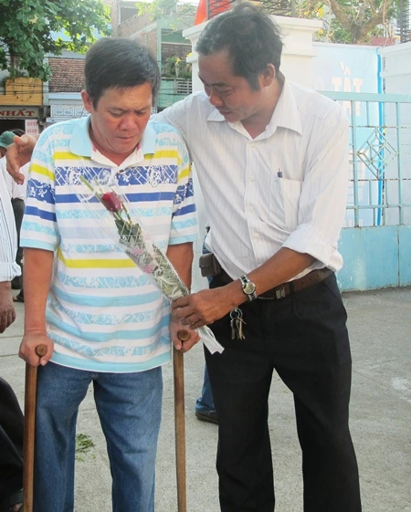 Hai thương binh Trường Sa gặp lại nhau: anh Trần Văn Hùng (phường 6, TP Tuy Hòa, Phú Yên) và Nguyễn Văn Dũng (TP Nha Trang, Khánh Hòa). Ảnh: TẤN LỘC