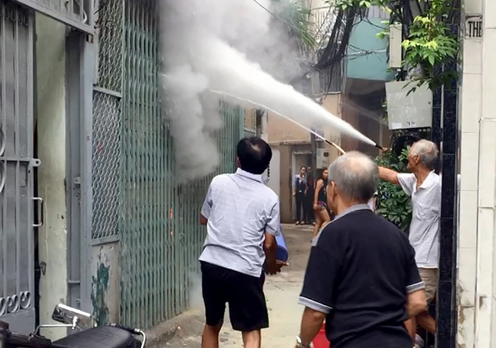 Người dân phát hiện khói lửa nên huy động bình cứu hỏa tiếp cận, khống chế đám cháy.