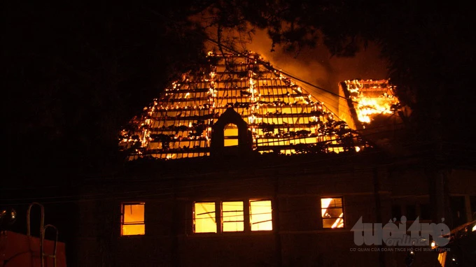 Đến khoảng 5g sáng, đám cháy cơ bản đã được khống chế. Ghi nhận tại hiện trường, vụ cháy khiến gần 1/3 mái nhà bằng ngói và gỗ bị thêu rụi hoàn toàn, nhiều vật dụng ở tầng trên cùng cũng bị cháy rụi.