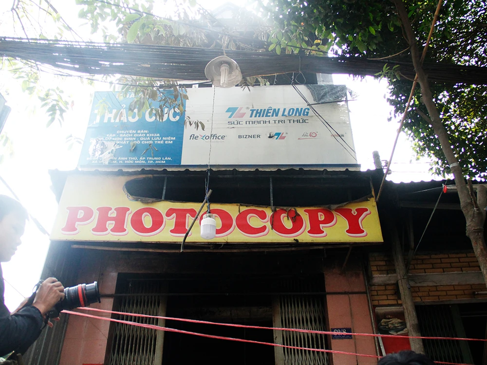 Hỏa hoạn bùng phát từ tiệm phôtô khiến ba người mắc kẹt bên trong. Ảnh: NGUYỄN TÂN