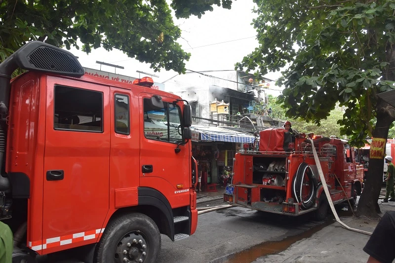 Bốn xe cứu hỏa có mặt tại hiện trường. Ảnh: B.TRÂM