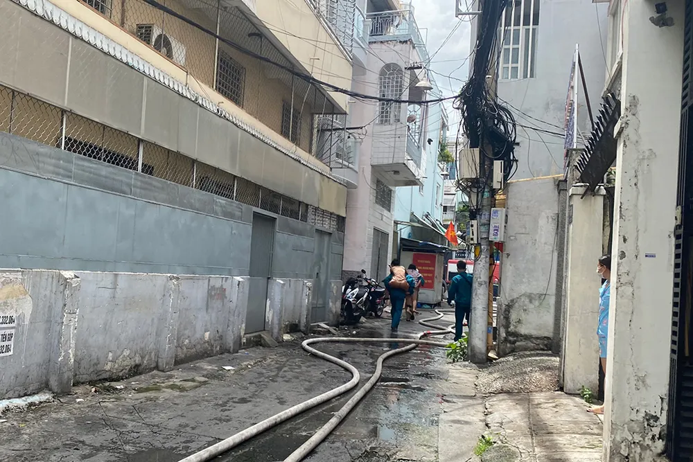 Hỏa hoạn bùng lên từ căn nhà trong hẻm đường Điện Biên Phủ khiến nhiều người mắc kẹt. Ảnh: PCCC