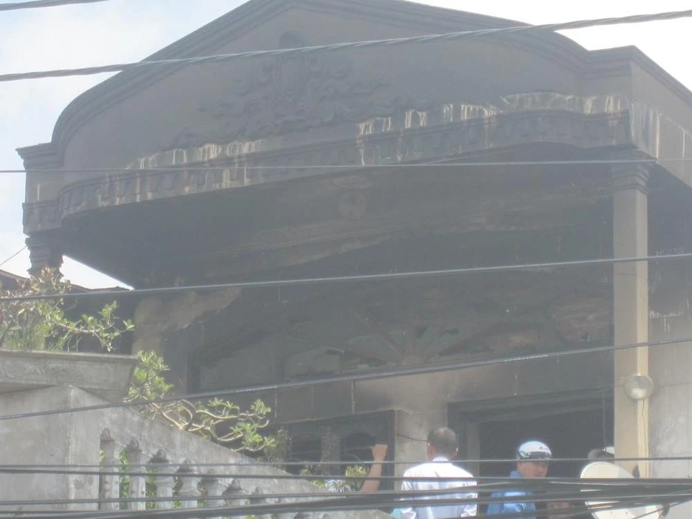 Quang cảnh ngôi nhà cháy từ tầng một lên tầng hai.