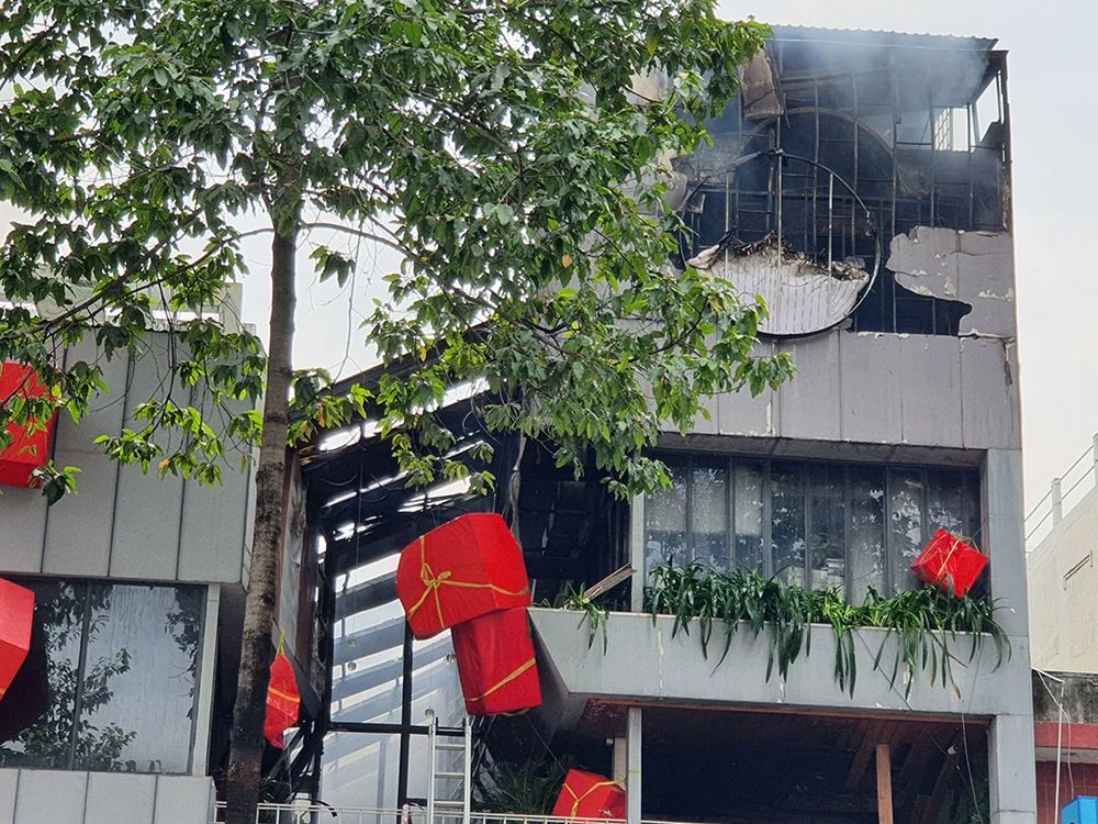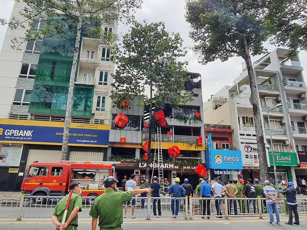 Hỏa hoạn bùng lên từ nhà hàng hàng buffet L.F. trên đường Trần Hưng Đạo (phường 1, quận 5) chừng 10 giờ 30 phút sáng 1-1.