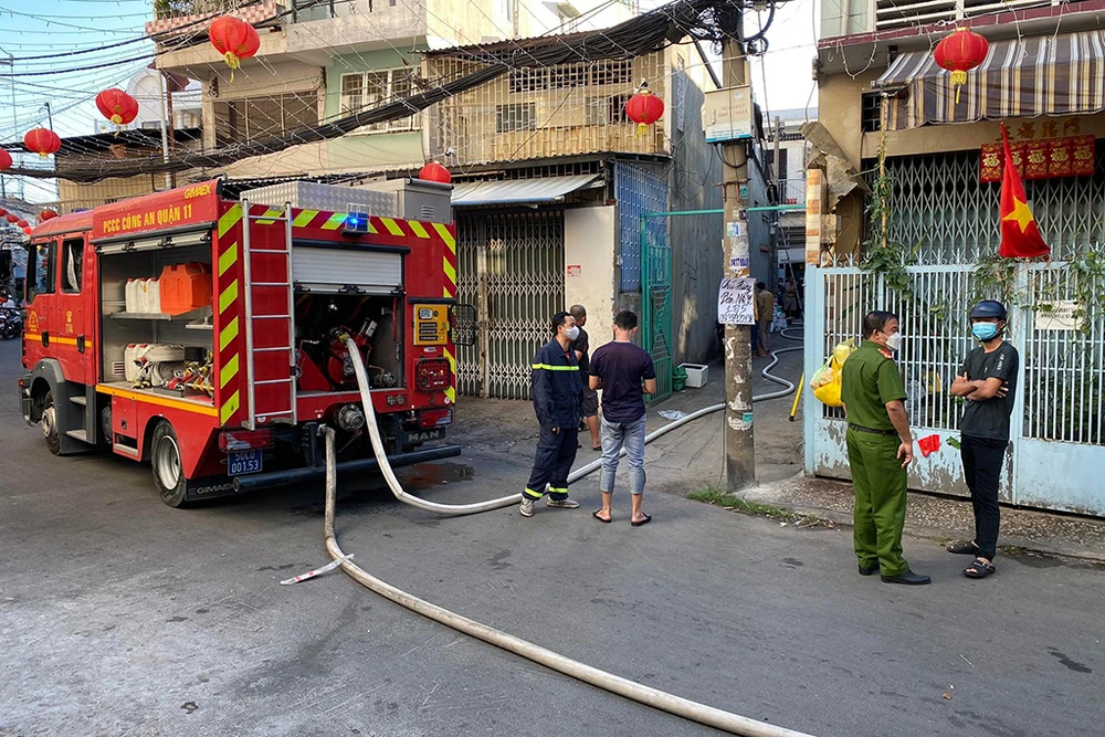 Khoảng 16 giờ 45 phút ngày 16-2, khói lửa bùng lên từ ngôi nhà cấp bốn nằm trong con hẻm 51 đường Âu Cơ (phường 14, quận Tân Bình, TP.HCM).